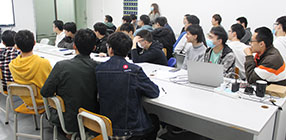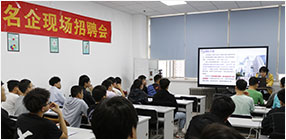 华清远见名企招聘会现场,为学生们解析答疑...